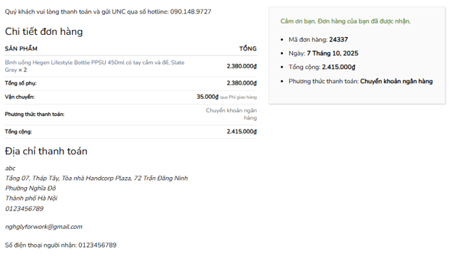 Bước 4: Sau khi quý khách tiến hành thanh toán chúng tôi sẽ gửi mã vận đơn và xác nhận đơn đặt hàng qua số điện thoại mà quý khách cung cấp để quý khách có thể theo dõi đơn hàng.