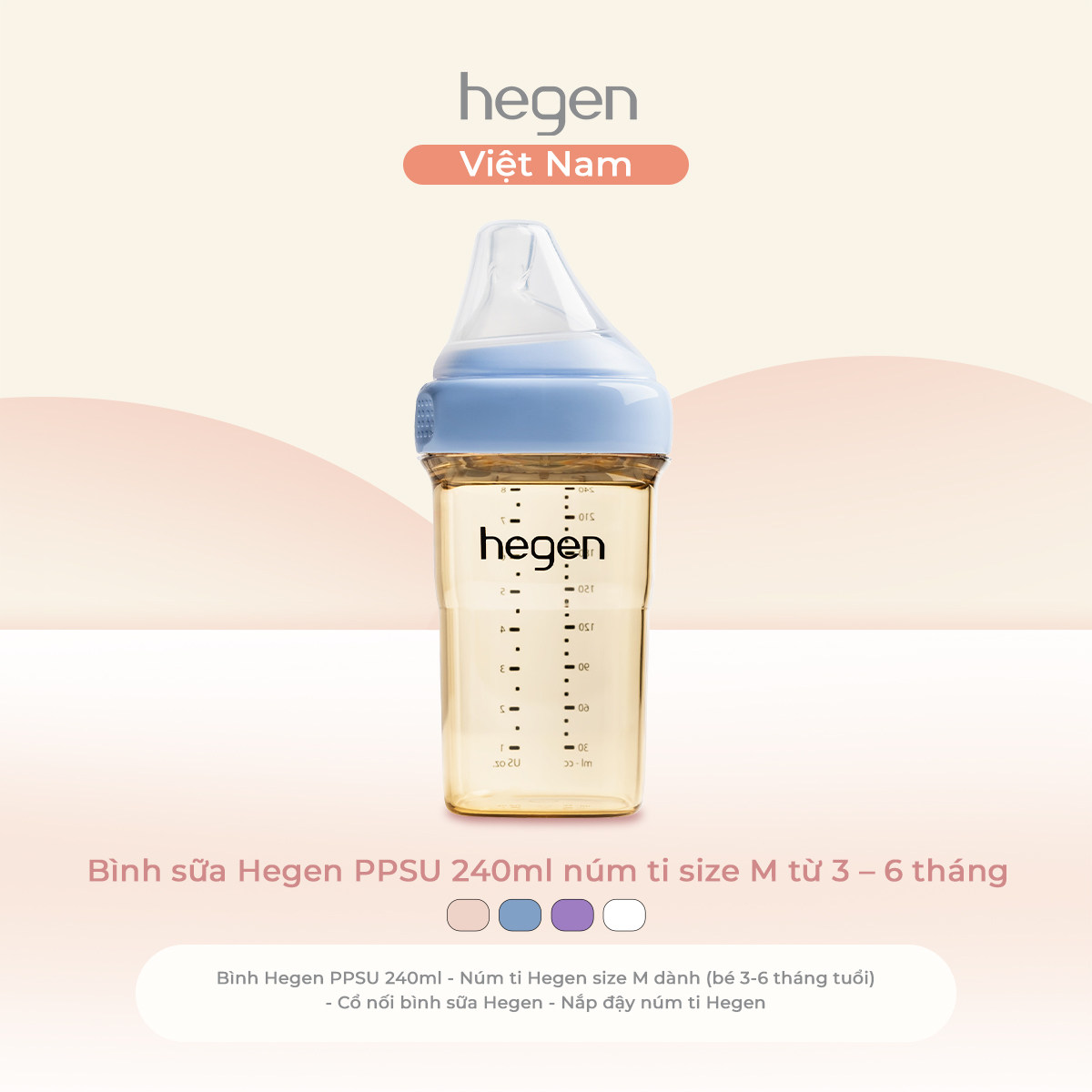 – Hegen là thương hiệu hàng đầu hiện nay, chuyên cung cấp các dòng sản phẩm dành cho mẹ và bé, thương hiệu Hegen rất được các mẹ quan tâm và yêu thích vì chất lượng sản phẩm theo tiêu chuẩn Châu Âu. Bình sữa Hegen – bình sữa duy nhất LỚN LÊN CÙNG CON với thiết kế núm ti thay đổi qua các bước: núm ti được thiết kế theo hình elip mô phỏng giống như ti mẹ, giúp bé có thể chuyển đổi từ ti mẹ sang ti bình một cách dễ dàng, các kích thước núm ti cho bé từ 0+ và 3+ chuyển sang núm ti cho bé 6+. Bình sữa Hegen mang đến giải pháp hoàn hảo giúp bé chuyển đổi từ bú mẹ qua ti bình dễ dàng.