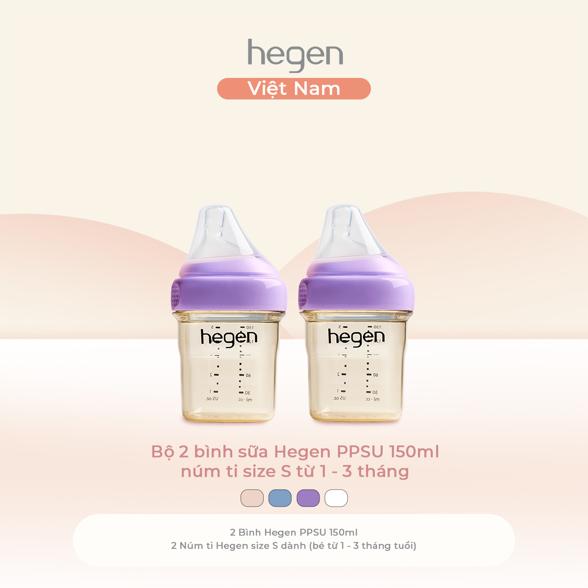 Bộ 2 bình sữa Hegen PPSU 150ml núm ti size S từ 1 – 3 tháng, Purple