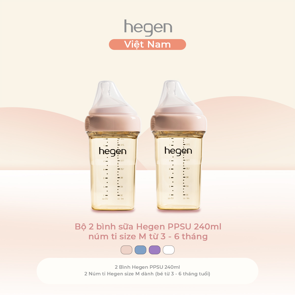 Bộ 2 bình sữa Hegen PPSU 240ml núm ti size M từ 3 – 6 tháng, Pink
