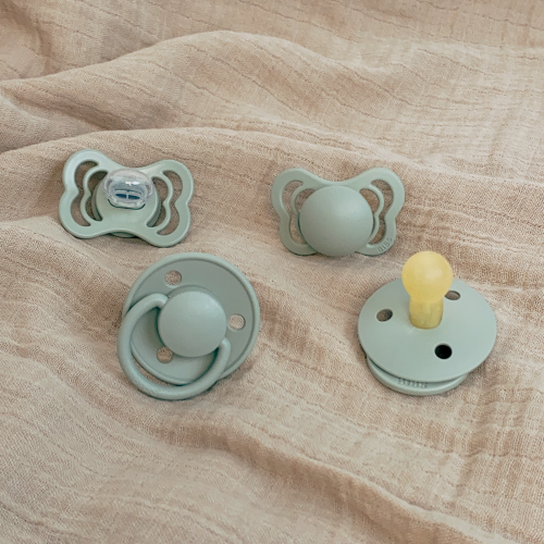 • x Ty ngậm Núm tròn cao su tự nhiên BIBS Colour Latex Size 1 (0-6 tháng), Sage.