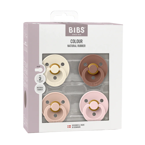 Bộ 4 ty ngậm núm tròn cao su BIBS Colour Latex Size 1 (từ 0-6 tháng), Ivory/Blush/Woodchuck/Blossom.