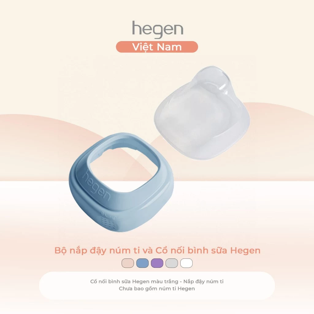 Bộ nắp đậy núm ti và Cổ nối bình sữa Hegen, Blue