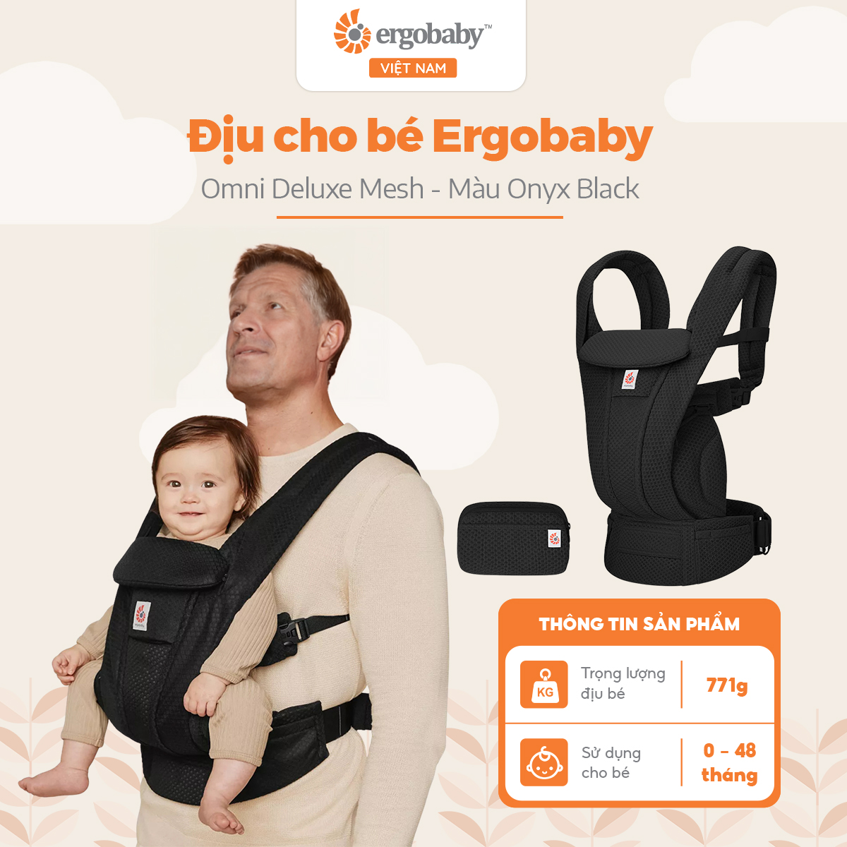 - Ergobaby Omni Deluxe được thiết kế chu đáo, thân thiện với người dùng, mang đến sự tiện lợi và thoải mái tối đa.