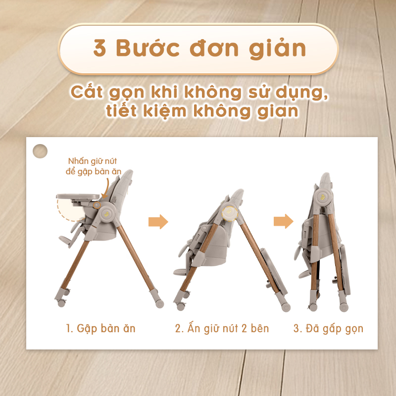 - Đồng hành dài lâu: Nhờ khả năng thay đổi linh hoạt độ cao, ghế có thể sử dụng cho bé từ giai đoạn ăn dặm đầu đời cho tới khi lớn hơn, giúp tối ưu hiệu quả sử dụng.