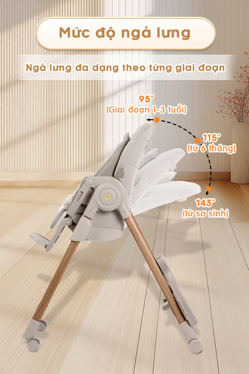 - 95°: Tư thế thẳng, dùng khi bé đã ngồi vững để ăn dặm.