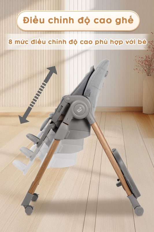 - Đồng hành dài lâu: Nhờ khả năng thay đổi linh hoạt độ cao, ghế có thể sử dụng cho bé từ giai đoạn ăn dặm đầu đời cho tới khi lớn hơn, giúp tối ưu hiệu quả sử dụng.