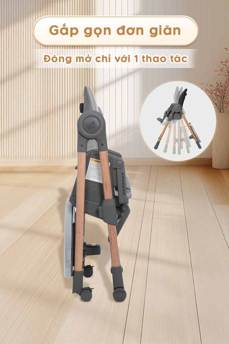 - Ghế ăn dặm Maxi-Cosi Minla Plus được thiết kế thông minh với khả năng gấp gọn chỉ trong tích tắc.