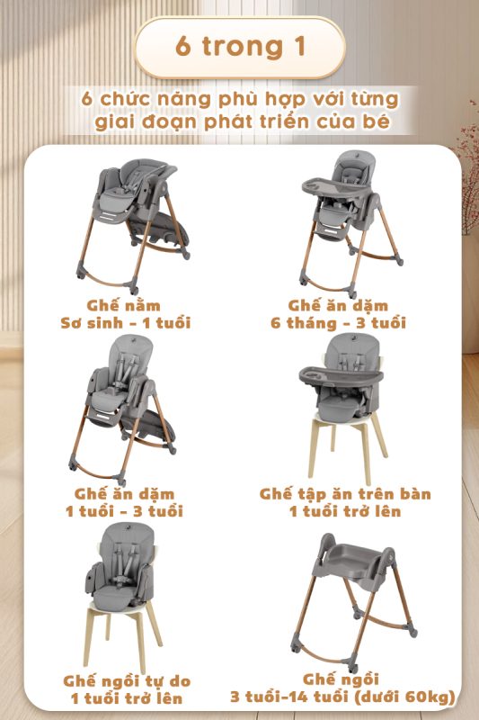– Ghế ăn dặm đa năng 6 trong 1.
