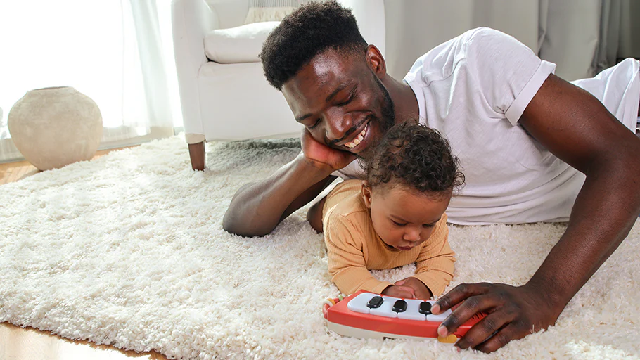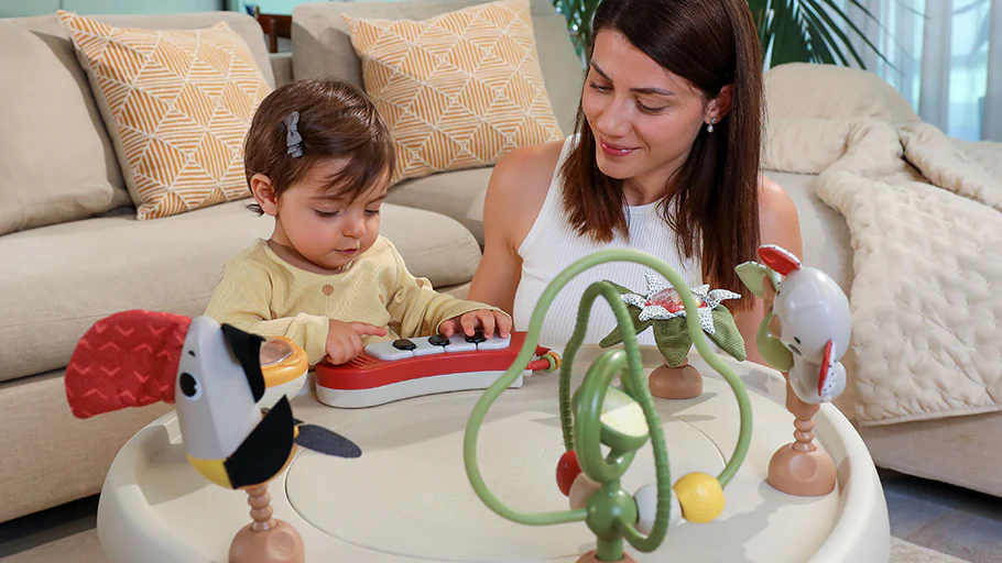 Nhiều loại đồ chơi và yếu tố hấp dẫn trẻ sơ sinh, trẻ nhỏ, cha mẹ, anh chị em và bạn bè cùng tương tác và vui chơi.