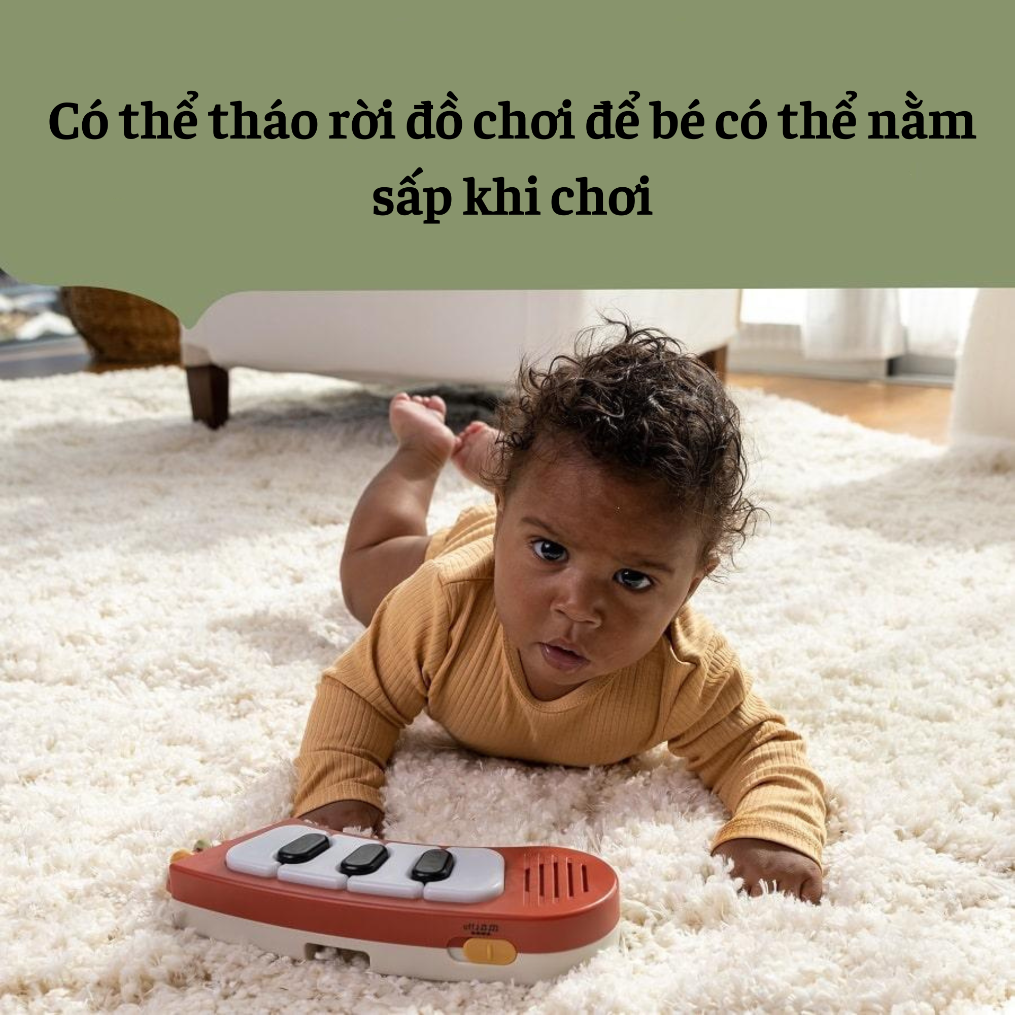 – Piano có đèn & âm thanh kích thích giác quan. Khi chạm tay, đập tay hoặc vô tình cựa người, bé sẽ: nghe âm thanh vui tai (các nốt nhạc / giai điệu đơn giản).