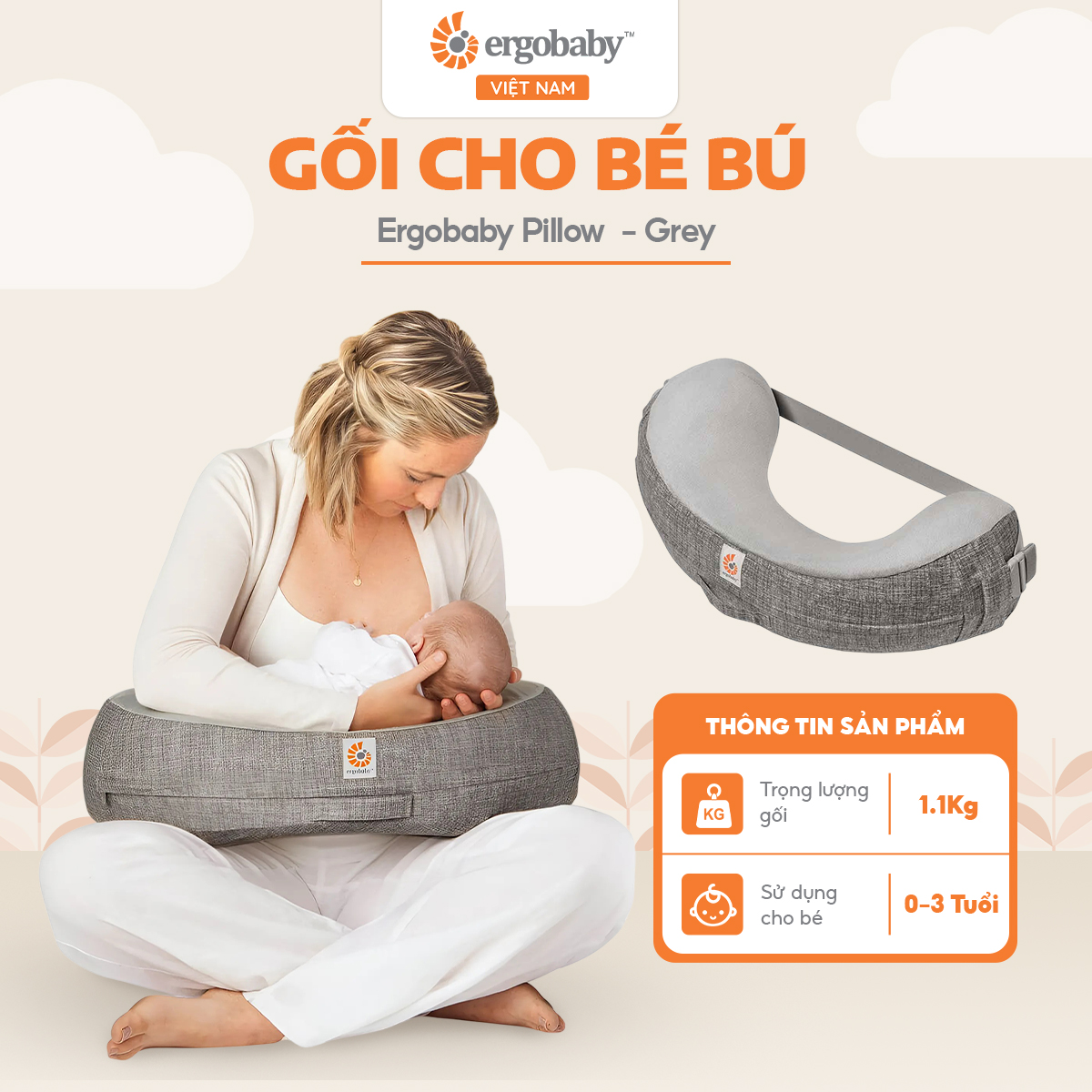 - Sau thai kì, các mẹ phải đối mặt với nhiều vấn đề về sức khỏe, cũng như cách chăm sóc con nhỏ, rèn luyện các kĩ năng cho con. Gối cho bé bú Ergobaby Pillow với phần đệm êm ái là lựa chọn hoàn hảo hỗ trợ hiệu quả cho các mẹ sau sinh.