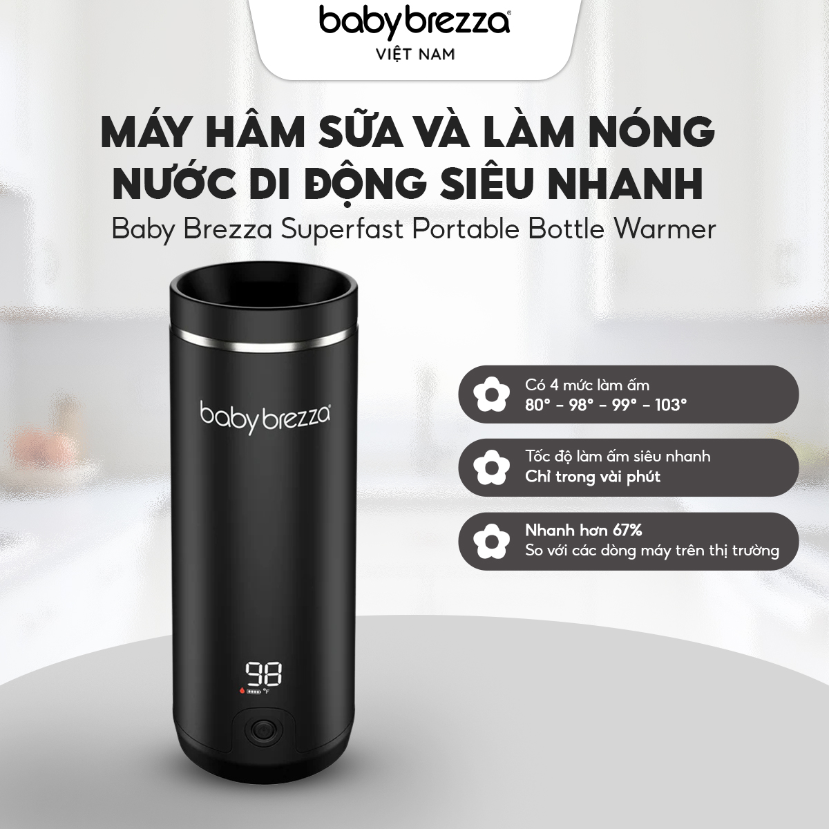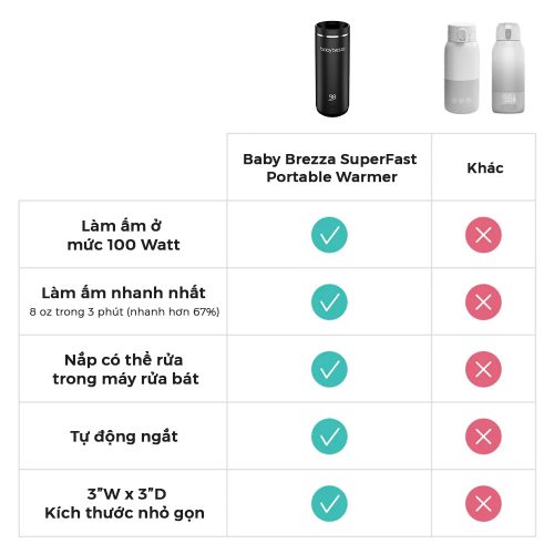 - Đẳng cấp khác biệt so với các dòng máy hâm sữa di động khác, Máy hâm sữa và làm nóng nước di động siêu nhanh Baby Brezza khẳng định sự vượt trội với những tính năng vượt trội: