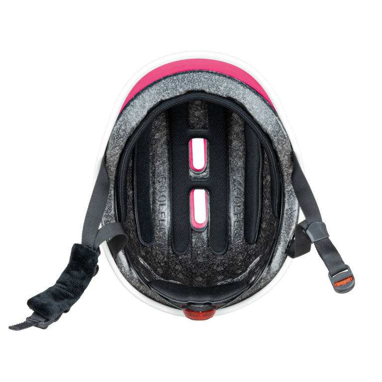 - Vỏ ABS chắc chắn với màu sắc hợp thời trang cùng lớp lót EPS hấp thụ lực va chạm để bảo vệ tối đa phần đầu của trẻ em.