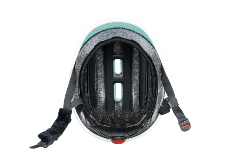 - Bên trong là lớp xốp EPS dày, đàn hồi, có tác dụng hấp thụ lực tác động cực tốt, phân tán lực ra toàn bộ mũ thay vì dồn vào một điểm, giúp bảo vệ đầu bé ở mức cao nhất.