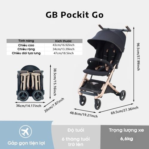 Xe đẩy gấp gọn GB Pockit Go, Velvet Black